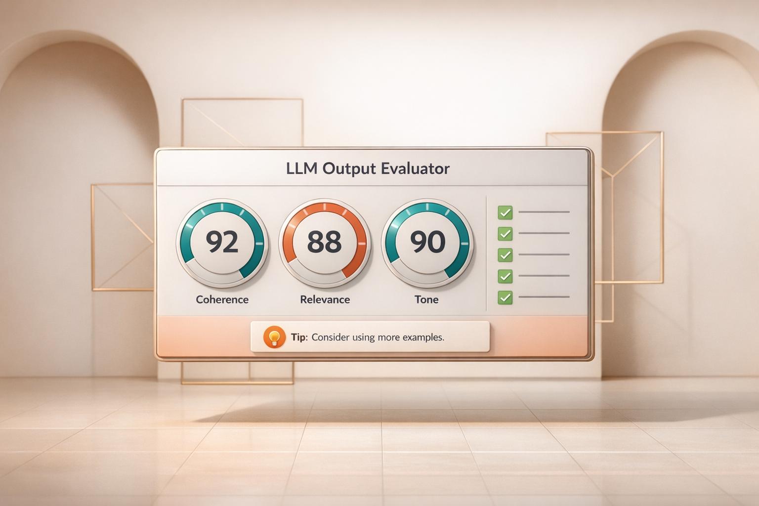Evaluate AI-generated text with our free LLM Output Evaluator. Check coherence, relevance, and tone, and get detailed scores and tips instantly!